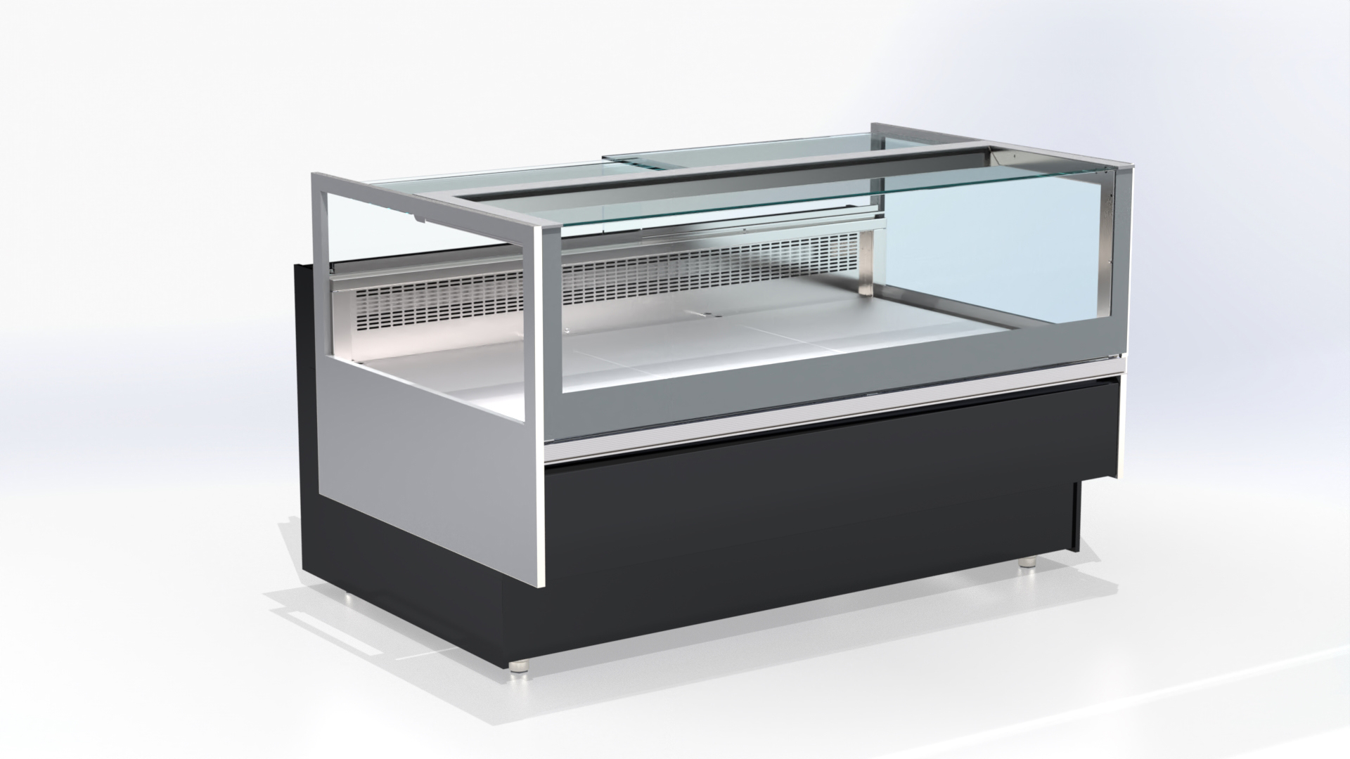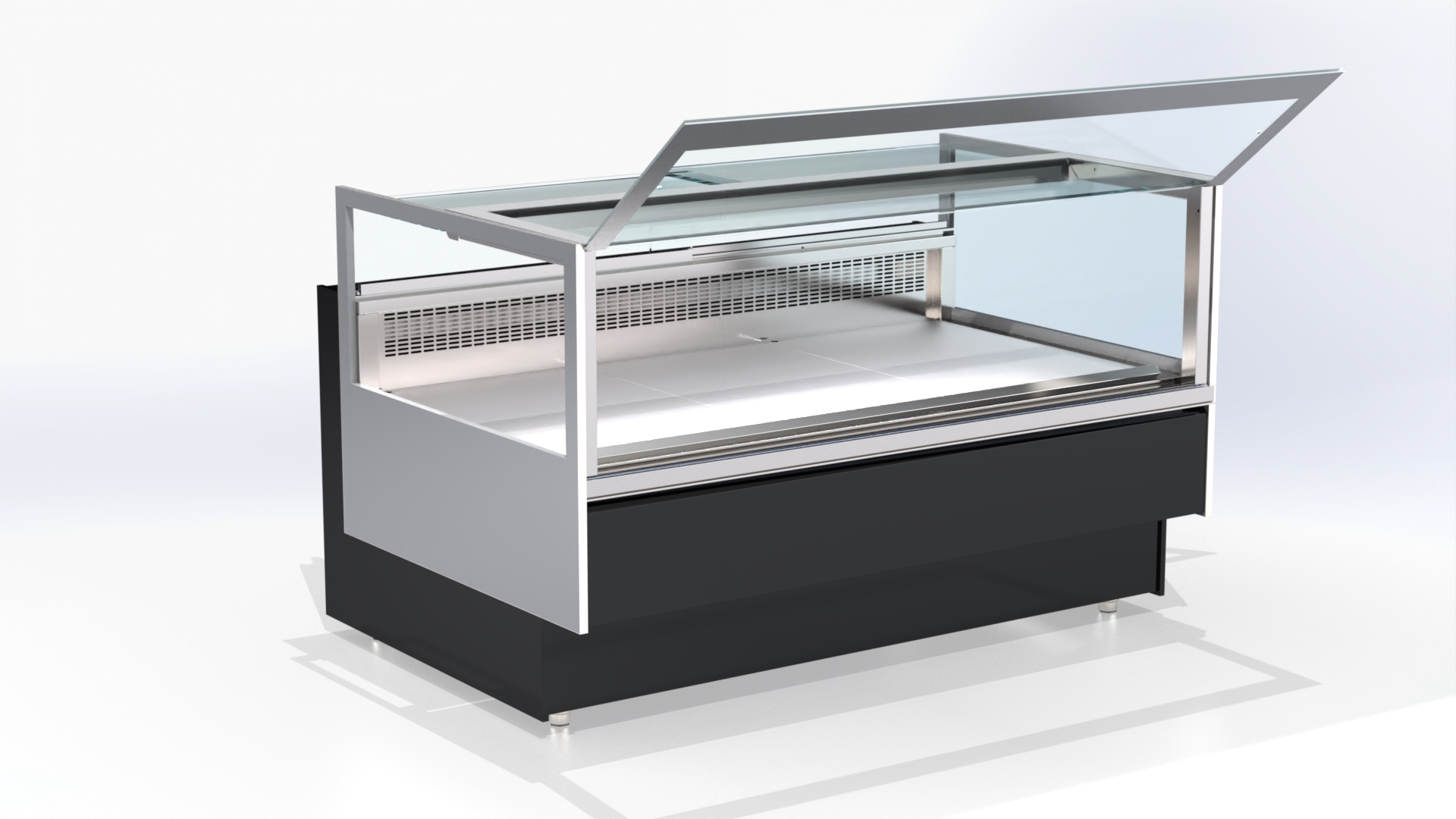 - Telo vitrine izrađeno od prohroma (nerdjajući čelik) sa poliuretanskom izolacijom gustine 46 kg/m³ i podesivim nogicama